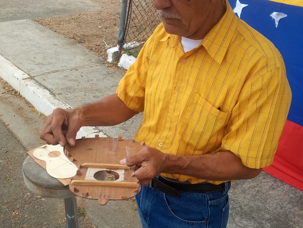 La actividad, que congregó una veintena de personas entre niños y adultos, consistió en una breve explicación de la aparición y desarrollo histórico del cuatro en Venezuela que estuvo a cargo de la directora operativa del Gabinete de Cultura Aragua, Maricanchi Jaimes. Posteriormente, se capacitó sobre la elaboración de este emblemático instrumento musical, desde la selección de la madera, pasando por todo el proceso de construcción, hasta culminar con su afinación.