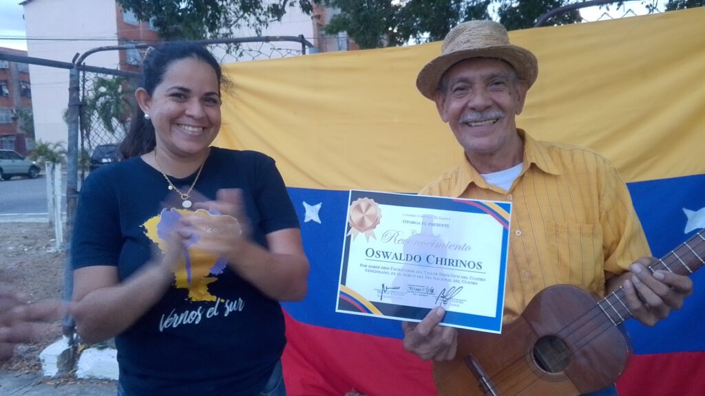Finalmente, la jornada culminó con la presentación del tema “Mi Cuatro y yo: un Patrimonio”, de letra y música del propio tallerista, dedicada al instrumento musical venezolano por excelencia, como lo es el Cuatro Venezolano.