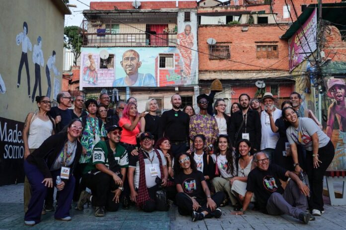 Prensa MPPC (12/10/2025).- Artistas plásticos internacionales y nacionales, presentes en la VI Bienal del Sur “Pueblos en Resistencia: El Poder de la Diversidad”, recorrieron este sábado 11 de octubre la parroquia San Agustín, en Caracas, y apreciaron la primera Galería Aérea de Venezuela, espacio cultural innovador que exhibe cinco fotografías apostadas sobre el techado de las viviendas de la localidad.