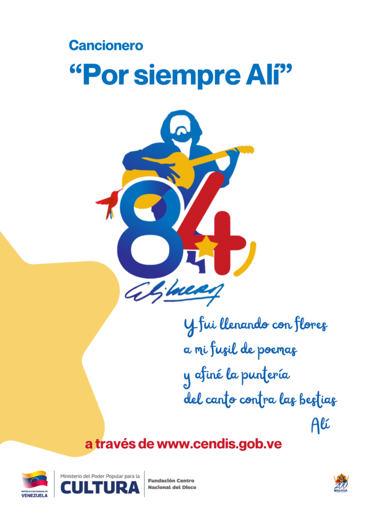 Caracas, 31 de octubre de 2025 – En homenaje al legado del cantautor del pueblo, Alí Primera, quien hoy cumpliría 84 años, el Centro Nacional del Disco (CENDIS) invita al público a celebrar su vida y obra a través del cancionero digital “Por Siempre Alí”.