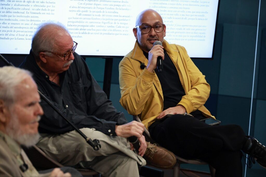 El encuentro, realizado en el Celarg, contó con la moderación de la periodista Marialcira Matute y la participación de los comunicadores Jaime Ballestas (Otrova Gomas), Roberto Malaver y Miguel Ángel Pérez Pirela, quienes profesaron afecto y admiración a Britto García, destacando sus entrañables vínculos de amistad.