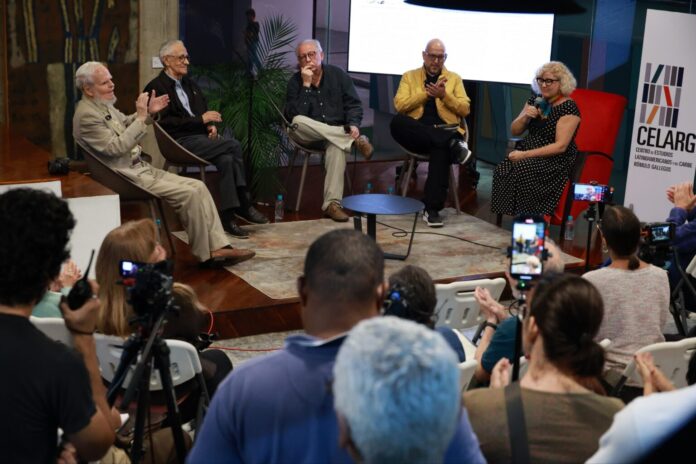 El encuentro, realizado en el Celarg, contó con la moderación de la periodista Marialcira Matute y la participación de los comunicadores Jaime Ballestas (Otrova Gomas), Roberto Malaver y Miguel Ángel Pérez Pirela, quienes profesaron afecto y admiración a Britto García, destacando sus entrañables vínculos de amistad.