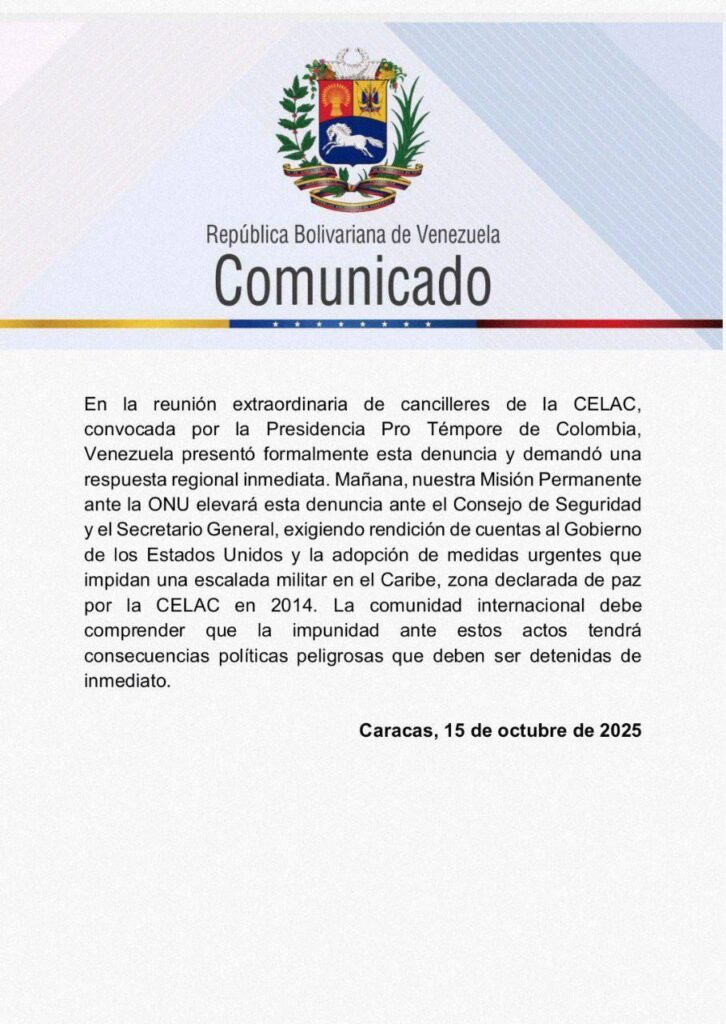 🟢 La República Bolivariana de Venezuela rechaza contundentemente las declaraciones belicistas y extravagantes del presidente de los Estados Unidos.