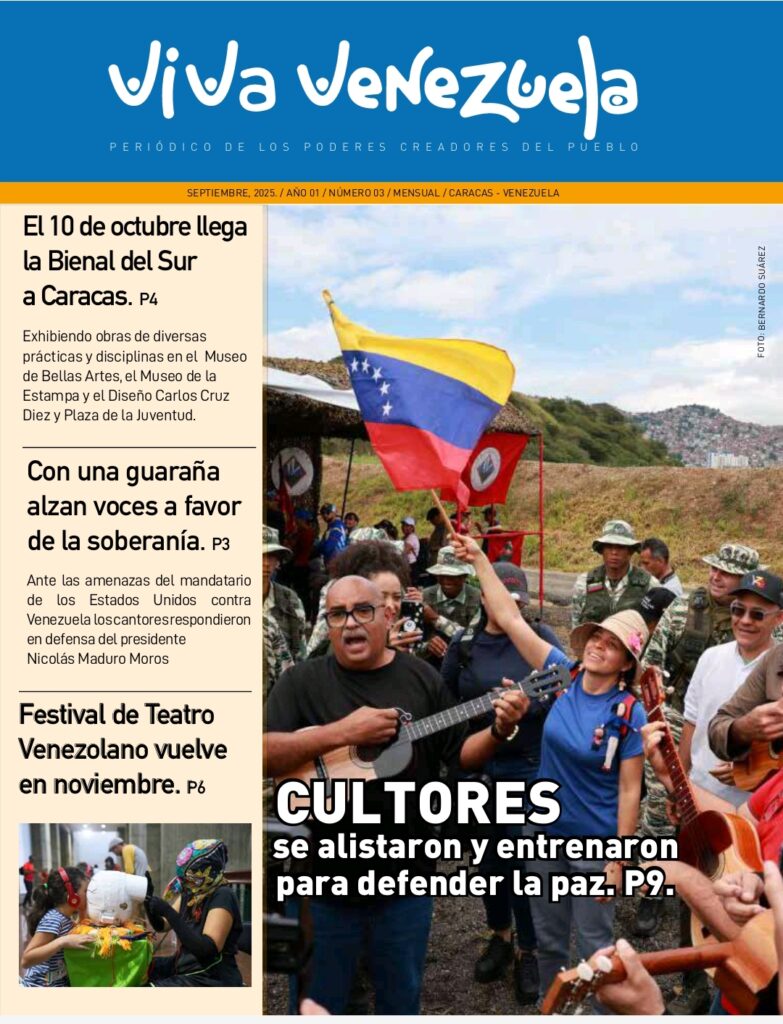 Prensa MPPC (01/10/25). – El periódico “Viva Venezuela” de la Gran Misión Viva Venezuela, Mi Patria Querida, lanza su tercera edición, destacando el papel esencial de la cultura en la defensa de la identidad y la Soberanía nacional.
