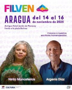 Esta edición regional de la Filven rinde homenaje a los escritores aragüeños Ninfa Monasterios, poeta, cuentista y articulista nacida en Maracay (1965), y José Argenis Díaz, ensayista, poeta y articulista nacido en Villa de Cura (1954), ambos con más de 30 años de carrera literaria.