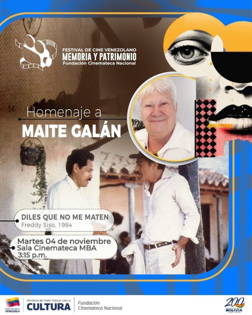 - Martes 04 de noviembre (3:15 p.m.): Homenaje a Maite Galán, promotora cultural y Premio Nacional de Cine, con la proyección del film Diles Que No Me Maten (1984).