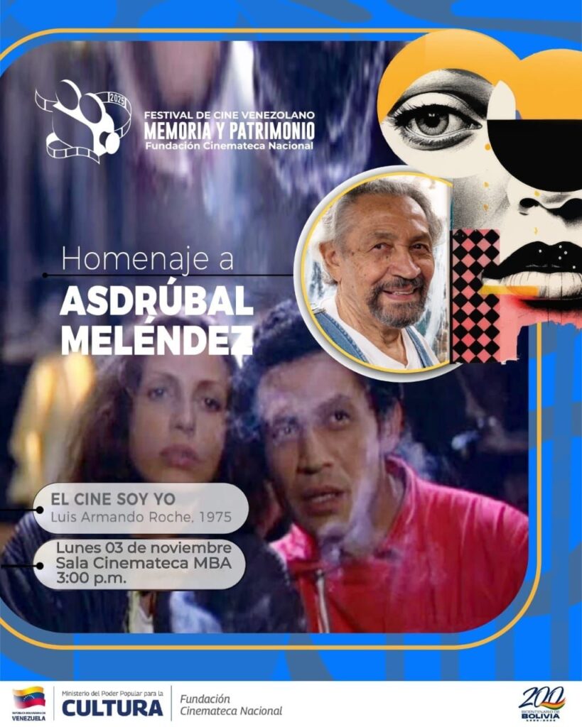 - Lunes 03 de noviembre (3:00 p.m.): Homenaje a Asdrúbal Meléndez, reconocido actor, poeta y Premio Nacional de Cine. Se proyectará El Cine Soy Yo (1975) de Luis Armando Roche.