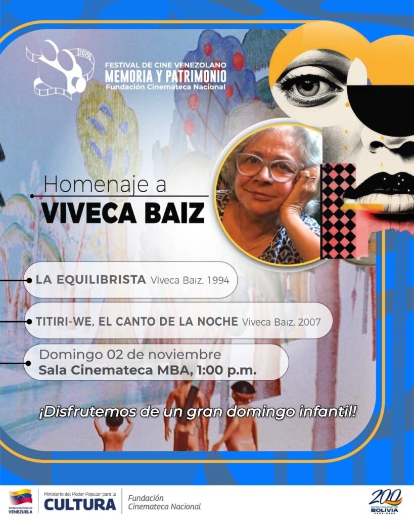 - Domingo 02 de noviembre (1:00 p.m.): Homenaje a Viveca Baiz, directora y guionista, con la proyección de sus cortometrajes La Equilibrista y Titiri-We, el canto de la Noche. Habrá una actividad especial para niñas y niños.