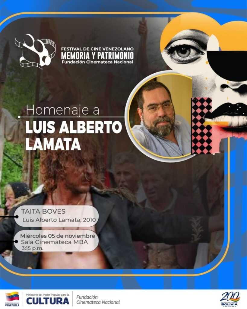 - Miércoles 05 de noviembre (3:15 p.m.): Homenaje a Luis Alberto Lamata, director y guionista, con la exhibición de su obra Taita Boves (2010).