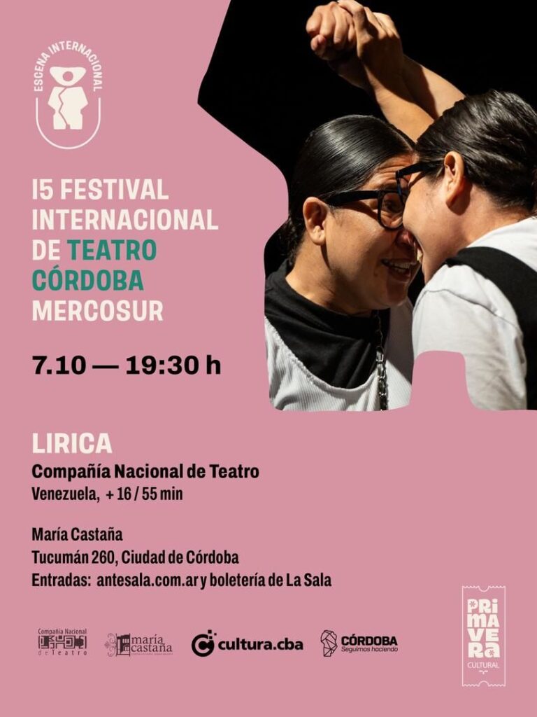 La 15ª edición del Festival de Córdoba – Mercosur reúne compañías de Argentina, Latinoamérica y Europa, con producciones de España, Francia, Brasil, Chile, Colombia, Uruguay, Perú, Bolivia y Venezuela, entre otros. En total, los asistentes podrán disfrutar de más de 100 funciones de teatro, danza y performances, distribuidas en 21 espacios de la ciudad de Córdoba y 20 localidades de la provincia.