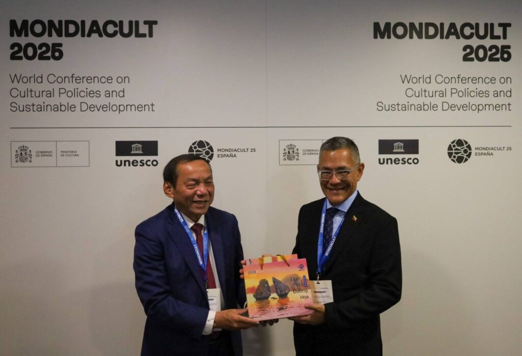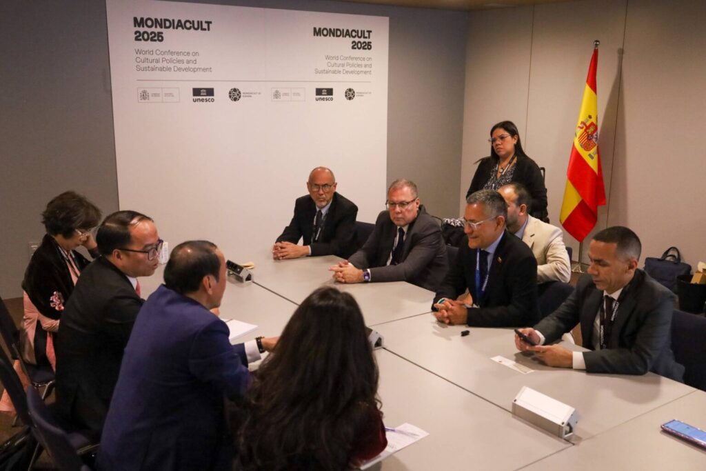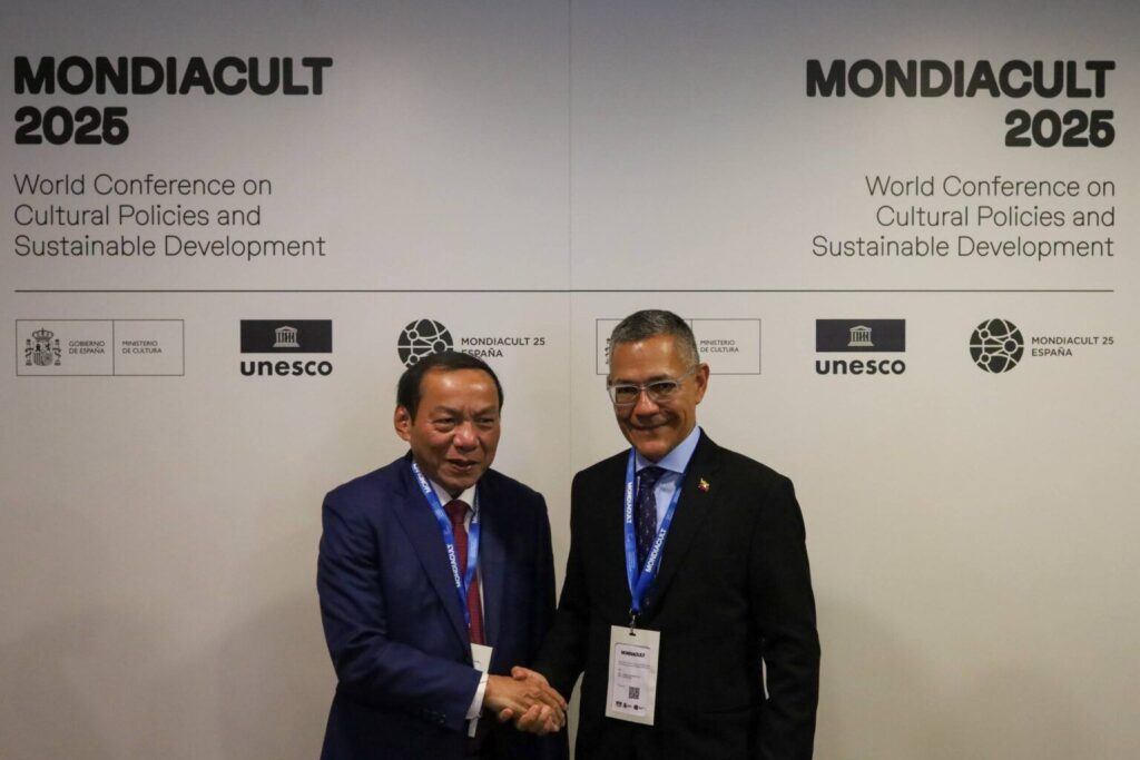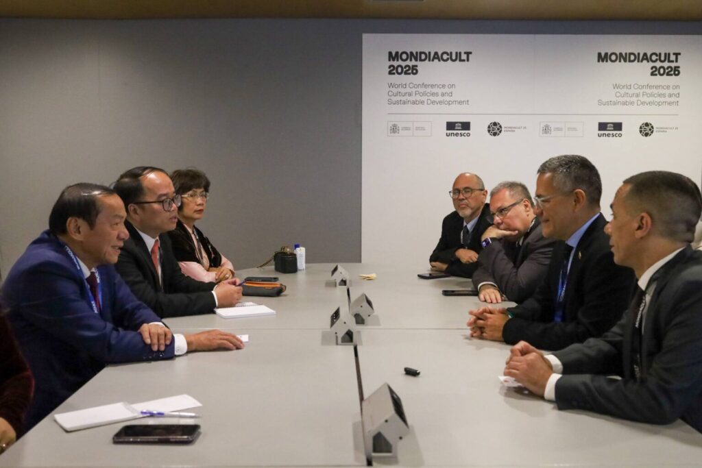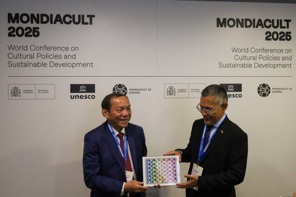Prensa MPPC (29/09/2025).- En el marco de la Conferencia Mundial de la UNESCO sobre Políticas Culturales y Desarrollo Sostenible (MONDIACULT) 2025, celebrada en Barcelona, España, el ministro del Poder Popular para la Cultura de Venezuela, Ernesto Villegas, y su homólogo de Vietnam, Nguyen Van Hung, sostuvieron este lunes una reunión bilateral para impulsar la cooperación cultural y reafirmar sus lazos de solidaridad.