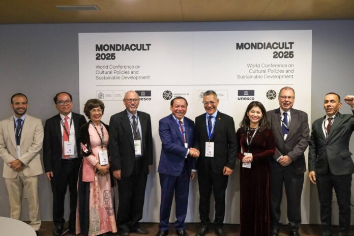 Prensa MPPC (29/09/2025).- En el marco de la Conferencia Mundial de la UNESCO sobre Políticas Culturales y Desarrollo Sostenible (MONDIACULT) 2025, celebrada en Barcelona, España, el ministro del Poder Popular para la Cultura de Venezuela, Ernesto Villegas, y su homólogo de Vietnam, Nguyen Van Hung, sostuvieron este lunes una reunión bilateral para impulsar la cooperación cultural y reafirmar sus lazos de solidaridad.